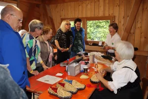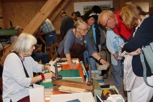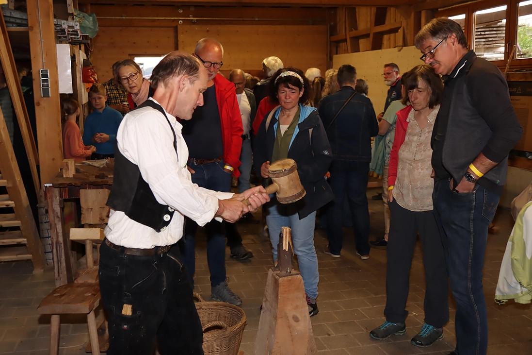 Schindeln und Ziegel bemalen und bei der Bürstenmacherin und beim Steinmetz gibt es auch etwas zum selbst Werken