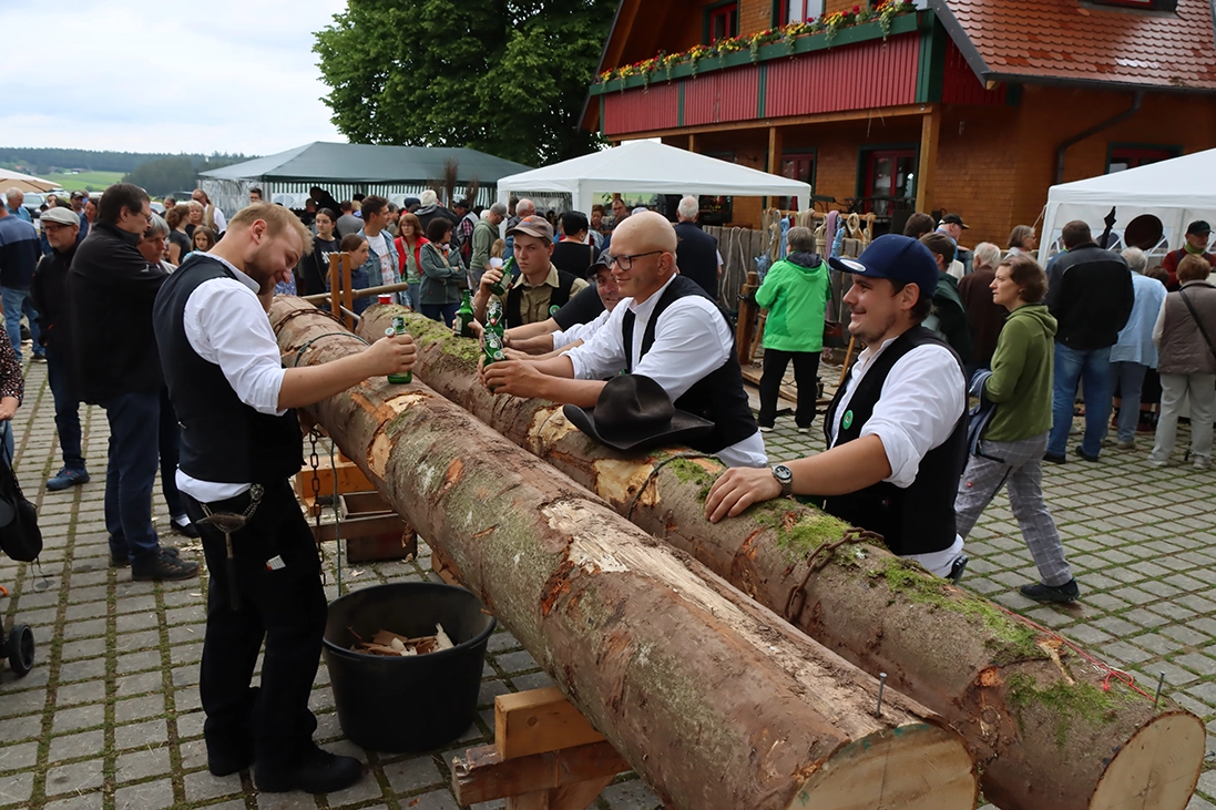 und Familie Zehle vom Breite-Halde-Hof Hausen vor Wald mit Kaffee und Kuchen